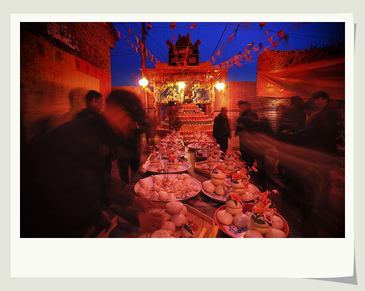每年农历二月十九,山西省吕梁市岚县旧城内即岚城北街有一传统的古庙会、即贡会。其主要活动形式就是摆贡,用面塑这种形式体现出民间人民追求真、善、美的一种礼祭祀活动。