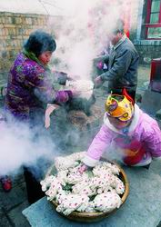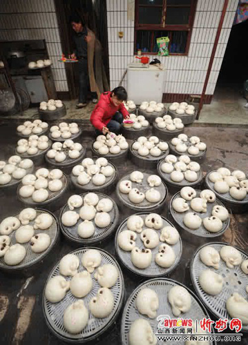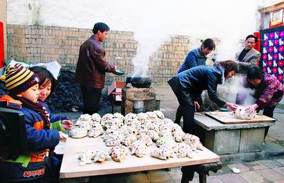 这种礼重行隆,表现之一就是家家蒸制面羊,祭祖分食之外,还要馈送亲友,为晋地特点。面羊馈亲,主送外甥。此俗起源于沉香劈山救母,舅舅以猪、羊相送传说,但山西南北流传最广的是“鸦反哺,羊跪乳”民间故事。相传二小长到16岁,顽劣异常,母亲只好让他帮舅舅牧羊。二小看到羊羔吃奶总是跪着,疑惑不解。舅舅说小羊跪乳是它懂得对母亲孝敬。二小又看到几只小乌鸦往来奔忙,衔来活食喂老乌鸦。舅舅说,这是乌鸦反哺,在报答养育之恩。二小渐悟事理,对舅舅说:“我要回家了,今后一定听妈妈话,长大成才,做个孝亲报恩的人。”此后每年舅舅都要送二小一只羊,提醒他好好长进,街坊邻舍互为效仿,又改为蒸送面羊,渐成此民间习俗。