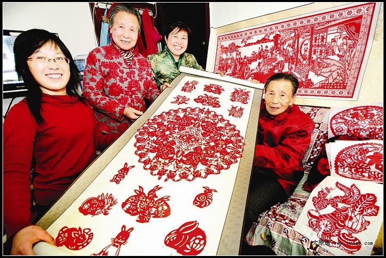 农历兔年即将来临之前,山西省民间剪纸艺术家辛爱英一家四代剪纸传人向大家展示了为喜迎农历辛卯年,历时十余天共同创作完成的剪纸作品《百兔迎春》。这幅作品宽0.5米、长两米,融传统与现代于一体,通过剪刻的手法描绘了百只形态各异、栩栩如生的玉兔团抱迎春花和富贵牡丹的场景,寓意百兔迎春送吉祥、祖国繁荣昌盛。梁琛 摄 ■