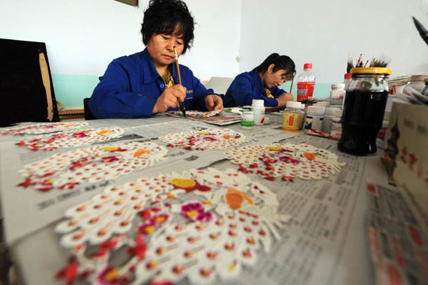 “有的同学升入高中后,剪纸成了他们的业余爱好和特长;而有的没能考上高中,就接着进行专门的剪纸培训,将它做成自己的事业。”王兴利说。 事实上,在广灵县,剪纸不只是一种传统文化,它已发展成一项产业。目前,该县已有两家剪纸艺术公司,形成了集产品研发、生产、展销、人才培养为一体的文化产业格局。“剪纸课的开设也为当地增加了一条就业途径。”王兴利说。将来是否以剪纸为业,李海媛并没有多想,她只是很享受现在学习剪纸的过程。“随着自己的心情裁剪点染,做出一幅独一无二的剪纸作品,这种感觉太棒了!”