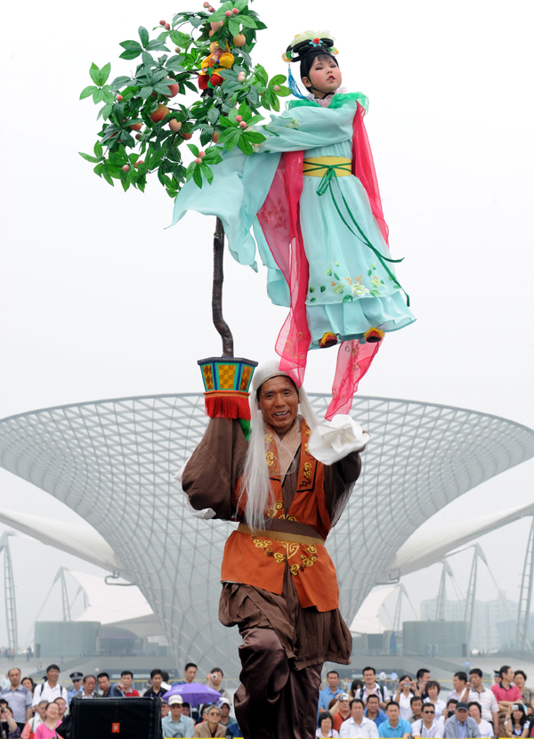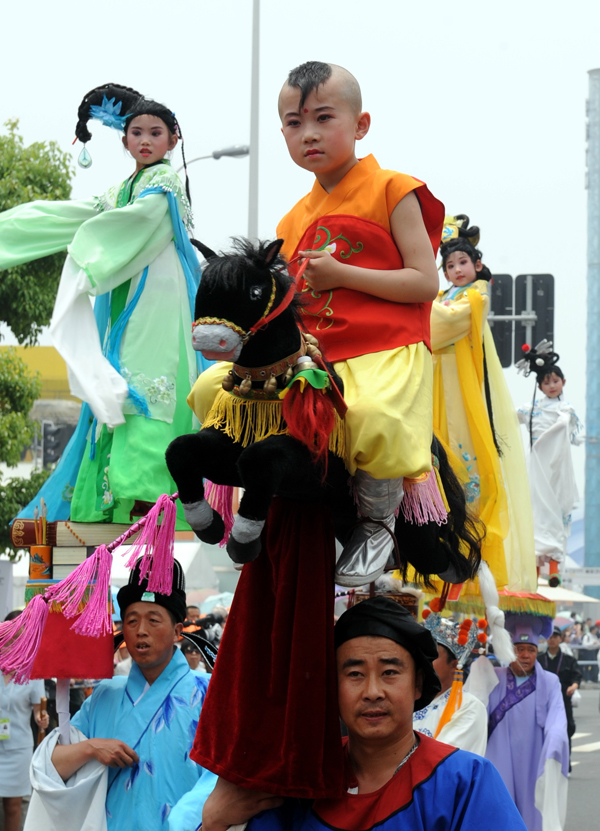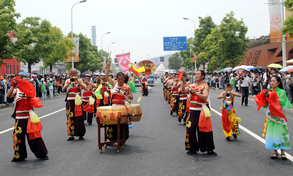 世博会山西周上的民间文艺节目巡游表演(以上两张照片由杨世尧拍摄)